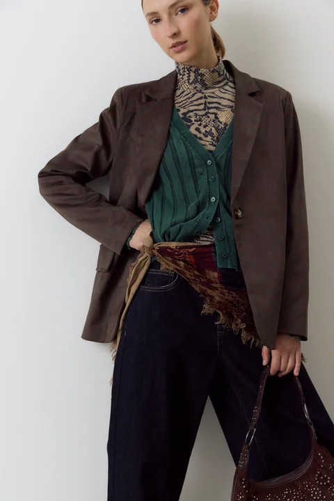 Blazer de suede con falsos bolsillos.