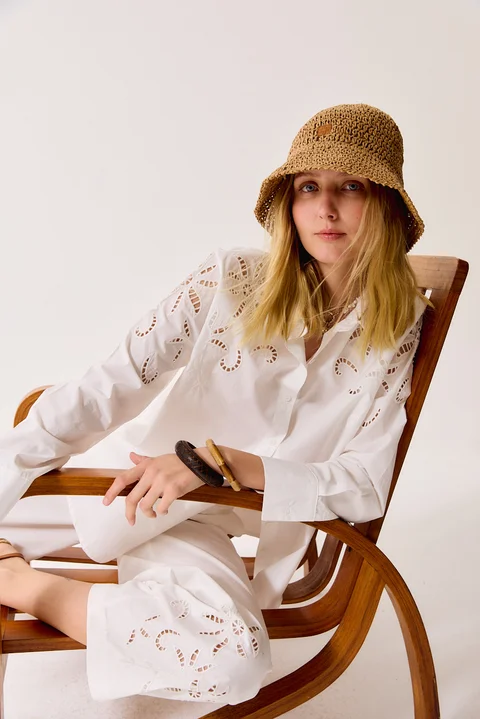 Camisa manga larga con broderie de flores en los hombros. Composición: 100% Algodón.
