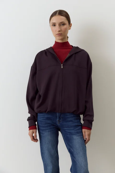 Campera balloon con capucha y bolsillos. Composición: 54% Tencel 40% Rayón 6% Spandex.