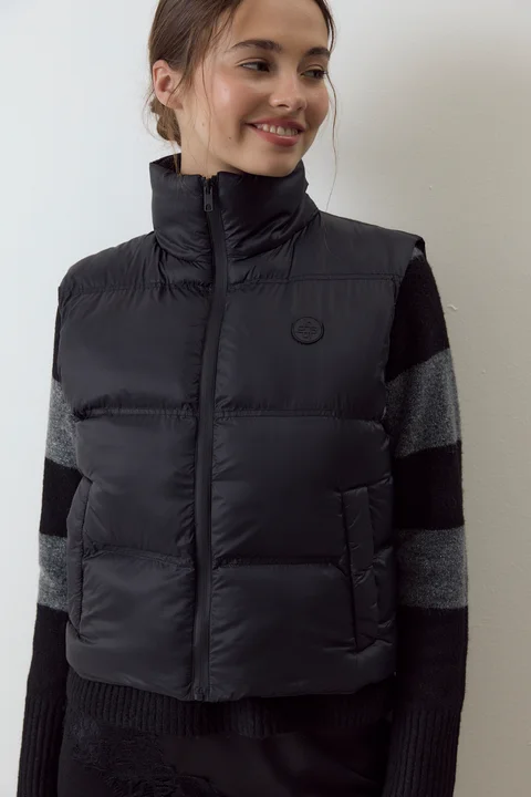 Chaleco puffer corto, con bolsillos laterales. Composición: 100% Nylon.