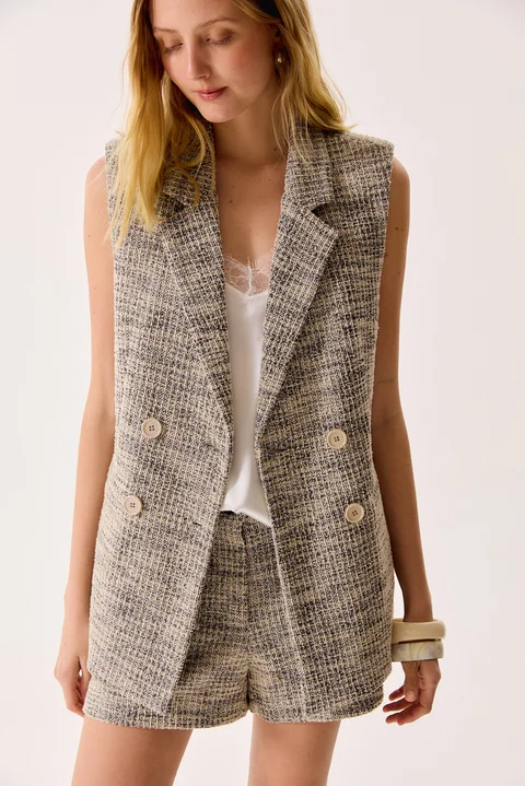 Chaleco cruzado sastrero tipo chanel. Composición: 74%Poliester 23% Algodón 3% Spandex
