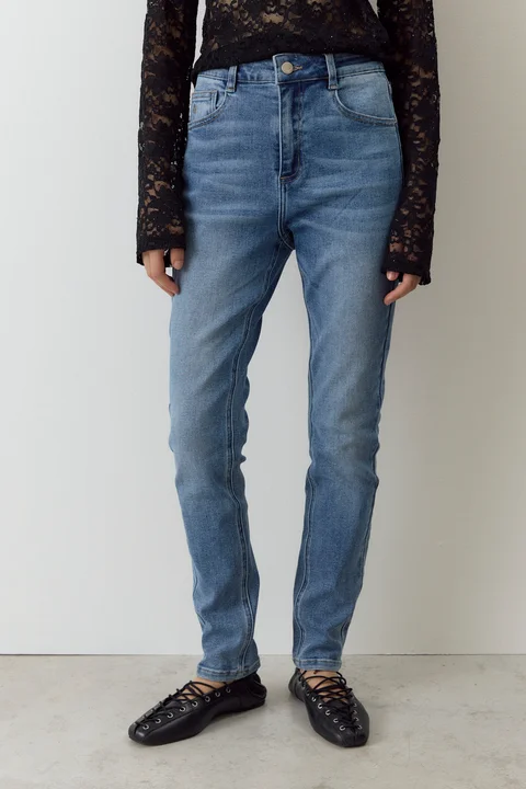 Denim chupín clásico. Composición: 60% Algodón 27% Poliéster 11% Viscosa 2% Elastano.