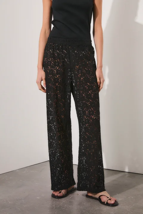 Pantalón palazzo de encaje, con cintura elastizada. Composición: 100% poliéster.
