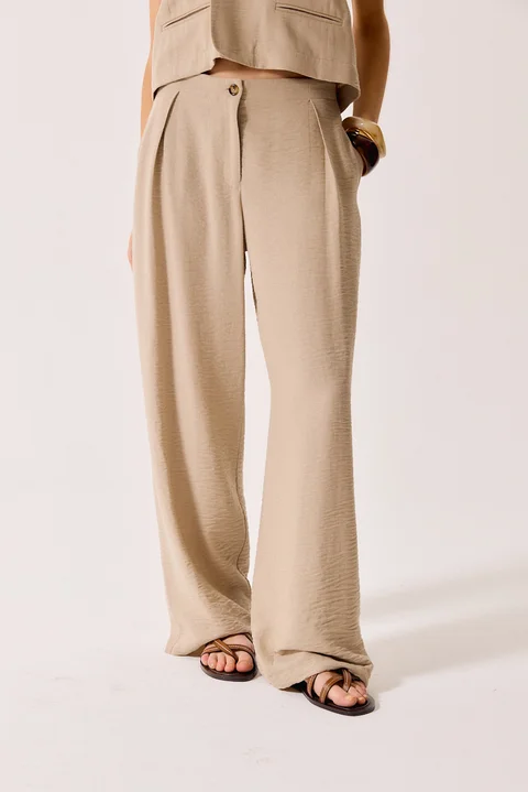 Pantalon sastrero de lino, con pinzas delanteras, bolsillos y boton. Composicion: 52%Poliester 33%Rayon 15%Lino.