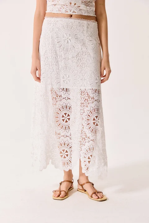 Pollera de guipure floral. Composición: 100% Poliéster.