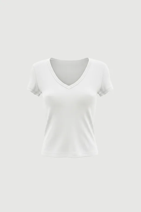 Remera manga corta escote "V" de ribb. Composición: 100% Algodón.