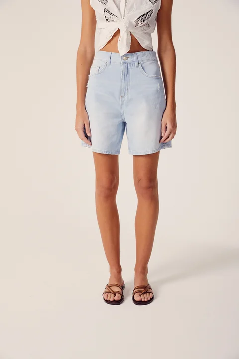 Bermuda de denim rígido celeste. Composición: 100% Algodón.