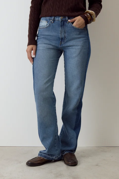 Straight de denim rígido con recorte de denim en laterales.