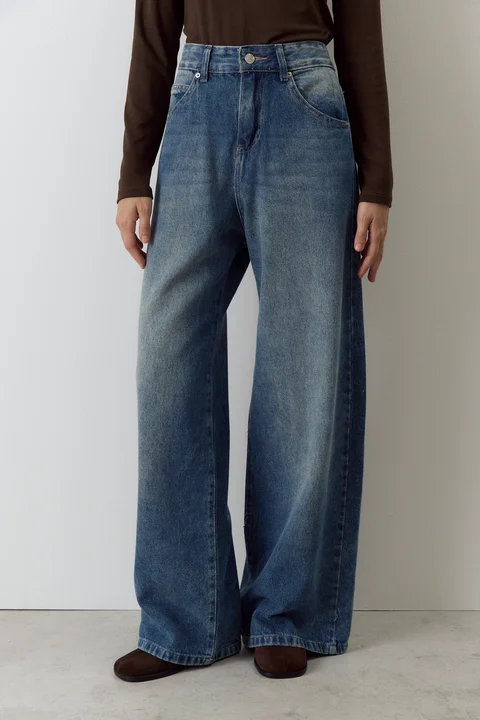 Denim super wide con lavado localizado. Composición: 100% Algodón.
