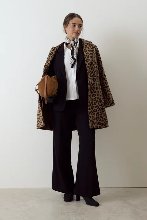 Tapado animal print con botones y bolsillos ojal. Composición: 100% Poliéster.