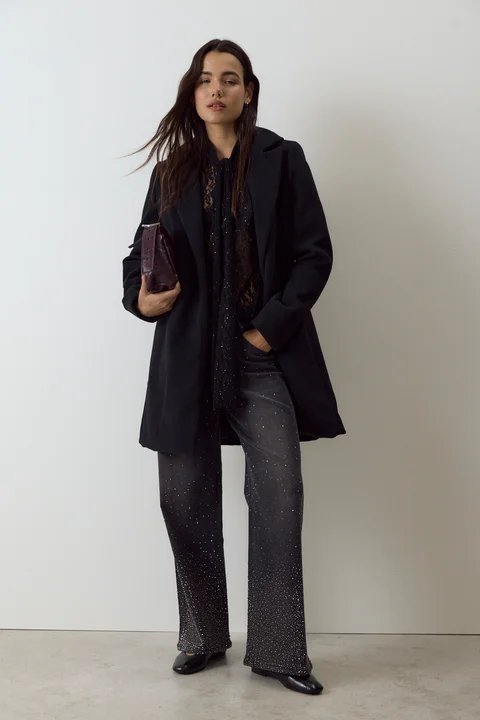 Tapado de paño con botones y bolsillos ojal. Composición: 80% Poliéster 17% Rayón 3% Spandex.